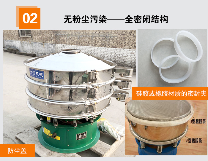在篩分粉狀物料時,不少用戶抱怨說揚塵大,在購買時用戶需要考慮到這一點,所以增加了選購的難度。大漢旋振篩設備采用全密閉結(jié)構(gòu),外加防塵蓋避免在粉狀物料篩分過程中出現(xiàn)粉塵飛揚現(xiàn)象,我們廠家的旋振篩采用硅膠或橡膠材質(zhì)的密封件對篩機進行密封處理,選用德國進口膠水進行加固,可以很大程度上降低粉塵污染。