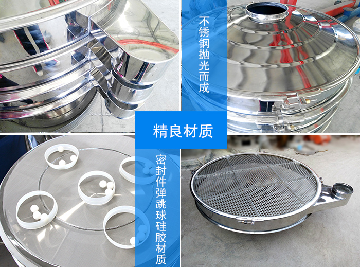 304不銹鋼拋光而成,彈簧外圍加不銹鋼防護罩,密封件及彈跳球均采用醫(yī)藥行業(yè)硅膠材質(zhì),所以材料的選擇都是嚴(yán)格按照標(biāo)準(zhǔn)來走的,大漢廠家的不銹鋼旋振篩有12個月的超長質(zhì)量保證,期間出現(xiàn)非人為因素的故障,廠家可以包退換。