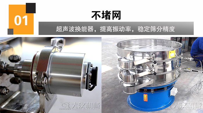 淀粉含水量高,易粘連堵網(wǎng),影響淀粉的篩分精度與產(chǎn)量,面粉超聲波振動(dòng)篩是將220V、50Hz或110V、60Hz電能轉(zhuǎn)化為36KHz高頻電能,輸入超聲波換能器,將其變成36KHz機(jī)械振動(dòng),保持網(wǎng)孔尺寸,可穩(wěn)定篩分精度,減少重復(fù)過(guò)篩次數(shù)。
