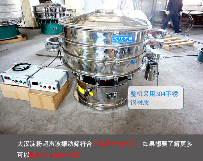 有用戶咨詢,問(wèn)淀粉用什么樣的振動(dòng)篩,經(jīng)過(guò)了解后,知道該客戶淀粉,而且要求產(chǎn)量比較大,一分鐘要篩出120kg淀粉,篩分目數(shù)為60目,但考慮到到用戶篩分的淀粉含水量達(dá)到7%,所以小編為這位客戶推薦了"大漢"超聲波振動(dòng)篩。