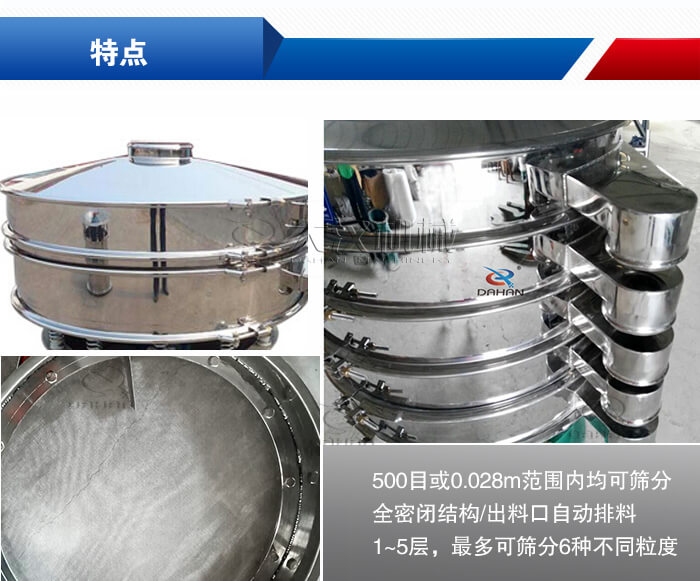 【優(yōu)勢】:①304/316不銹鋼材質(zhì)拋光而成,符合醫(yī)藥行業(yè)衛(wèi)生標(biāo)準(zhǔn);②500目或0.028m范圍內(nèi)均可篩分,5微米的液體或漿狀物料均可過濾;③全密閉結(jié)構(gòu),防止粉塵溢散,液體飛濺