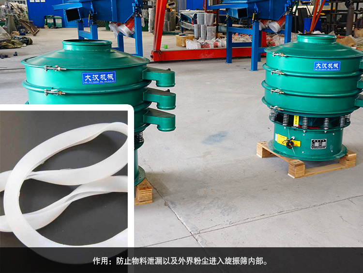 作用:防止物料泄漏以及外界粉塵進入旋振篩內(nèi)部。