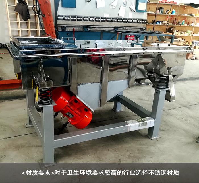 大漢螺帽分級(jí)直線振動(dòng)篩通常是采用的碳鋼材質(zhì)制作而成,但是有些對(duì)于衛(wèi)生環(huán)境要求較高的行業(yè)選擇不銹鋼材質(zhì);通常不銹鋼材質(zhì)有全不銹鋼材質(zhì)和不銹鋼+碳鋼材質(zhì)這兩種。全不銹鋼材質(zhì)的振動(dòng)篩全機(jī)身采用不銹鋼制作而成,造價(jià)相對(duì)較高;不銹鋼+碳鋼或者是全碳鋼材質(zhì)的直線振動(dòng)篩價(jià)格更低一些。